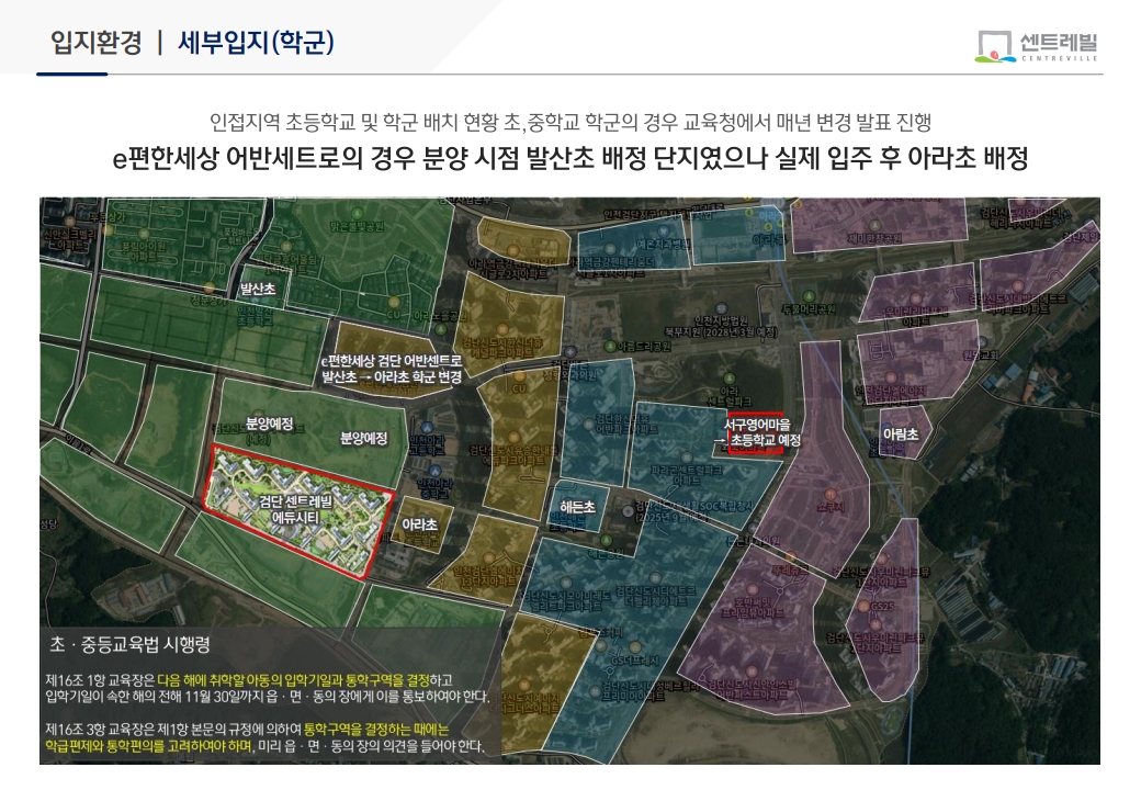 검단 센트레빌 에듀시티의 가장 큰 특징 중 하나는 ‘에듀시티’라는 이름에 걸맞은 교육환경입니다. 단지 인근에 유치원과 초·중·고교가 계획·배치되어 있어, 자녀가 있는 가정에서 선호하는 학세권 입지 조건을 갖추고 있습니다.