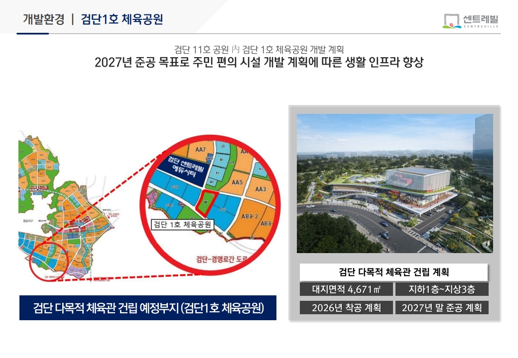 또한 검단 센트레빌 에듀시티 인근에는 공원과 녹지, 산책로 등이 계획·조성되어 있어, 아침·저녁으로 가벼운 산책이나 주말 가족 나들이 코스로 활용하기에도 좋습니다. 아이들이 집 근처에서 안전하게 뛰어놀 수 있고, 성인도 러닝·조깅을 즐길 수 있는 환경을 원하는 수요자에게 긍정적인 요소입니다.
