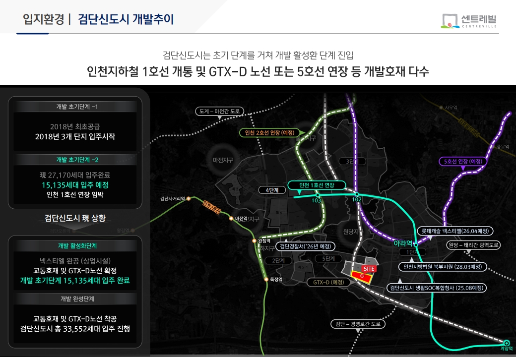 검단 연장선 개통으로 검단에서 계양·부평·송도 등 주요 도심으로의 이동 시간이 단축되었고, 환승을 통해 서울역·용산 등 핵심 업무지구 접근도 이전보다 수월해졌습니다. 장기적으로는 GTX 등 광역철도 논의와 연계될 경우, 검단신도시 전체의 교통 경쟁력과 검단 센트레빌 에듀시티의 가치가 함께 높아질 수 있습니다.