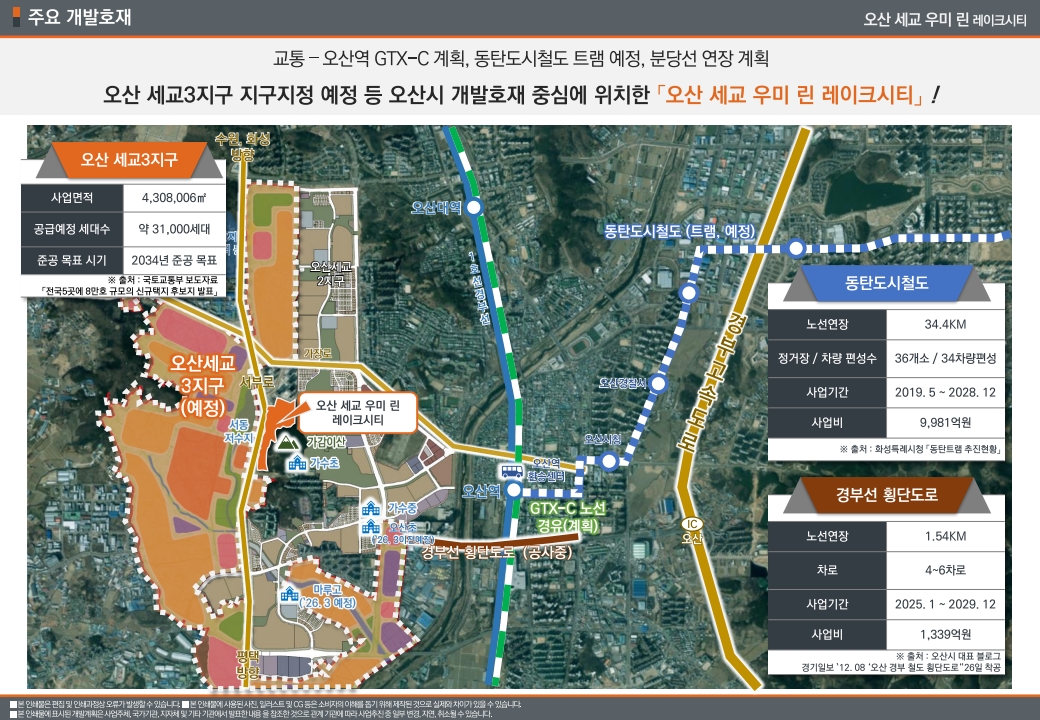 10년 넘게 부동산 시장을 지켜보면서 확실히 느끼는 게 있습니다. 좋은 입지는 처음부터 완성되어 있는 게 아니라 만들어진다는 것입니다. 오산세교 우미린 레이크시티는 지금 그 과정의 한가운데 서 있습니다. 세교3지구 본격 개발, GTX-C 연장 확정, 동탄트램 개통, 반도체 클러스터 확대. 이 모든 변화들이 하나씩 현실이 되어가고 있습니다.