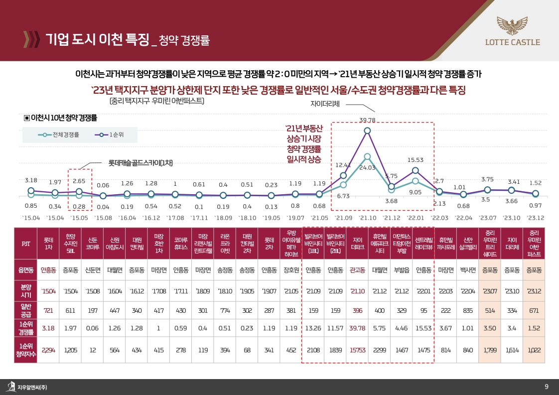롯데건설의 브랜드 파워도 무시할 수 없는 요소입니다. 최근 부산 양정 롯데캐슬 프론티엘이 2개월 만에 완판되었고, 인천 계양 롯데캐슬 파크시티는 3,053세대라는 대규모 물량을 모두 소화했습니다. 서울 용산 남영역 롯데캐슬 헤리티지는 평균 91.6대 1이라는 높은 경쟁률을 기록하며 시장의 뜨거운 관심을 받았죠. 이런 일련의 성공 사례들은 롯데캐슬 브랜드에 대한 시장의 신뢰가 얼마나 두터운지를 보여줍니다.