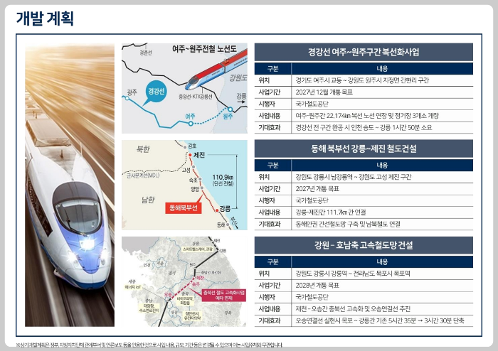 지역의 미래 가치를 판단할 때는 개발 계획도 중요하게 살펴봐야 합니다. 강릉역 미래형 복합환승센터 조성 계획을 시작으로, 강릉과 인천을 잇는 경강선 고속철도가 2029년 완공 예정입니다. 동해북부선은 2027년 개통을 목표로 추진 중이고, 강릉과 목포를 연결하는 강호축 고속철도 사업도 계획되어 있습니다. 여기에 천연물 바이오 국가산업단지 조성, 옥계일반산업단지 확장, 옥계항 개발 및 항만배후단지 조성 등 대규모 개발 사업들이 예정되어 있어 지역 경제 활성화와 함께 부동산 가치 상승도 기대해볼 수 있습니다.