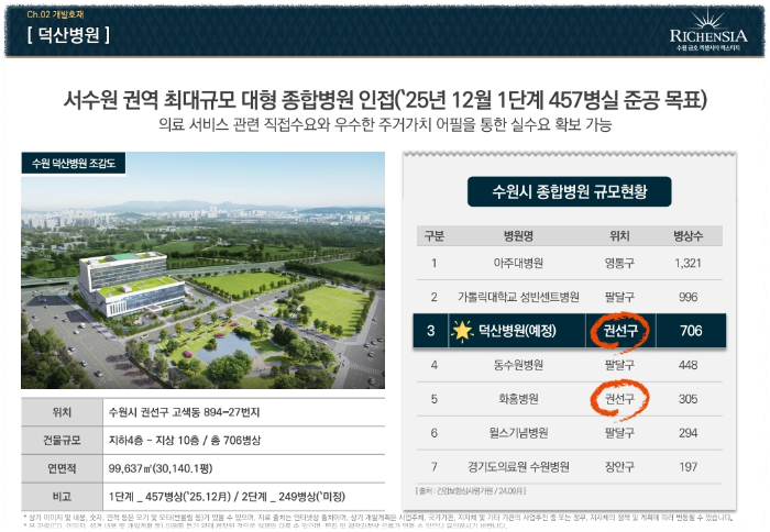 많은 분들이 서수원 지역에 대해 상대적으로 낙후되었다는 선입견을 갖고 계십니다. 하지만 실제로는 권선구는 수원시 4개 구 중 인구수 1위를 기록하고 있으며, 각종 인프라 개선 사업이 활발하게 진행되는 곳입니다. 고색2지구 인근에는 2025년 말 개원 예정인 수원덕산병원이 건립 중이며, 이는 700병상 규모의 대형 종합병원입니다. 서수원 주민들이 오랫동안 기다려온 의료 인프라가 실현되는 것이죠. 이처럼 실질적인 생활 편의가 개선되는 변화가 곳곳에서 일어나고 있습니다.
