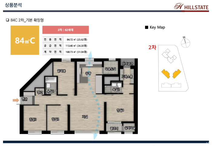 힐스테이트 대구역 퍼스트는 지하 5층부터 지상 41층 규모로, 총 216가구가 전용 84제곱미터 단일 평형으로 구성됩니다. 실수요자들이 가장 선호하는 중소형 평형대로, 관리와 활용 면에서 실용성이 높습니다. 단지 내 1층부터 3층까지는 힐스 에비뉴라는 상업시설이, 4층은 주민공동시설로 조성되어 입주민 편의를 고려한 설계가 돋보입니다.