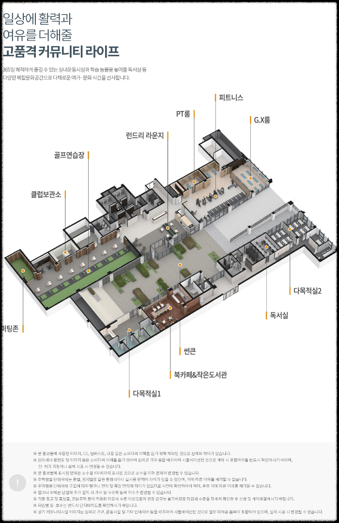 생활 편의시설 접근성도 뛰어납니다. 단지 바로 앞 준주거지역에는 각종 상업시설이 들어설 예정이고, 학교 부지와 공원 부지도 도보권에 있어 교육과 여가를 모두 가까이에서 해결할 수 있습니다. 3면이 트인 개방형 설계에 진경산수원 같은 자연 테마 조경이 적용되고, 아이들을 위한 테마 놀이터와 물놀이 공간까지 마련되어 어린 자녀를 키우기에 최적의 환경이 갖춰집니다.