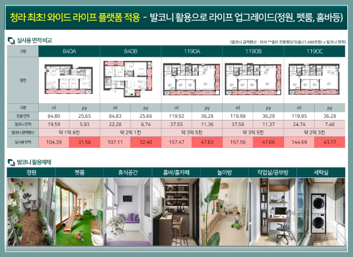 오피스텔 하면 흔히 좁고 답답한 공간을 연상하기 쉽습니다. 하지만 이런 선입견은 이제 바꿔야 할 때입니다. 이곳은 인천에서 처음으로 실내형 발코니를 적용한 주거용 오피스텔이기 때문입니다. 84제곱미터 전용면적 기준으로 약 20제곱미터에 달하는 발코니가 더해져 실제 사용 가능한 면적은 104107제곱미터 수준으로 넓어집니다. 더 큰 평형인 119제곱미터 타입은 2437제곱미터의 발코니가 제공되어 실사용 면적이 144~157제곱미터까지 늘어나는 효과가 있습니다. 이 여유 공간은 홈 오피스로 꾸미거나, 반려동물을 위한 공간, 혹은 취미실이나 홈 바 등으로 활용할 수 있어 거주자 개개인의 취향에 맞춘 맞춤형 생활이 가능합니다.