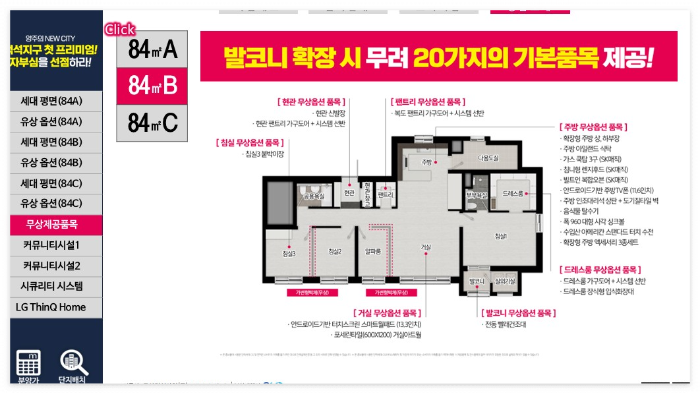평면 구성을 살펴보면 실수요자 관점이 반영된 흔적들이 보입니다. 전용 84제곱미터 단일 타입으로 구성했다는 점이 그렇습니다. 요즘 시장에서 가장 선호도가 높은 면적대죠. 5베이 구조에 남향 중심 배치로 설계되었고, 판상형 구조를 일부 적용해 채광 효율을 높였습니다. 수납 공간도 세심하게 계획했는데, 알파룸과 드레스룸, 팬트리를 배치해 공간 활용도를 극대화했습니다. 주차는 전량 지하에 배치하고 지상부는 공원형 조경으로 꾸며 쾌적함을 더했다고 합니다.
