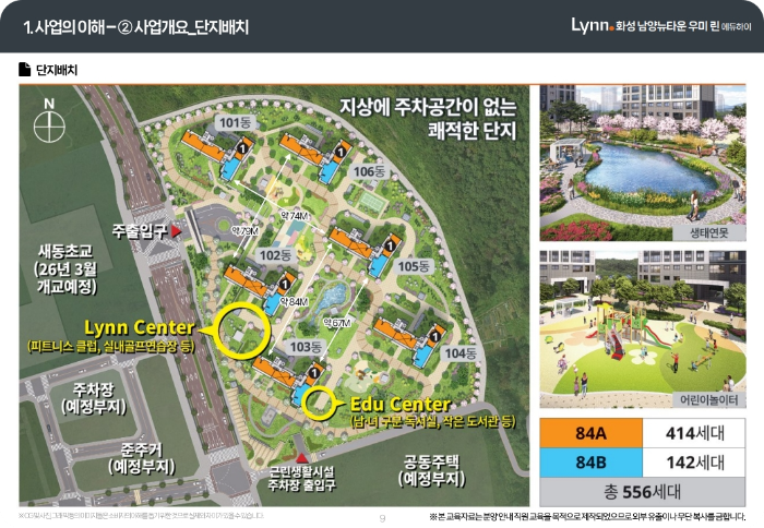 단지 기본 정보를 살펴보면, 화성시 남양읍 남양리 2198번지 일원에 지하 2층부터 지상 24층 규모로 총 6개 동 556세대가 들어섭니다. 전 가구가 전용면적 84제곱미터 단일 평형으로 구성되는데요, 이는 실수요자 중심으로 설계됐다는 의미이기도 합니다. 84제곱미터는 우리나라에서 가장 선호도가 높은 면적대로, 신혼부부부터 자녀가 있는 가정까지 폭넓게 활용할 수 있는 크기입니다. 평형 선택에 대한 고민 없이 청약에 집중할 수 있다는 점도 장점이죠.