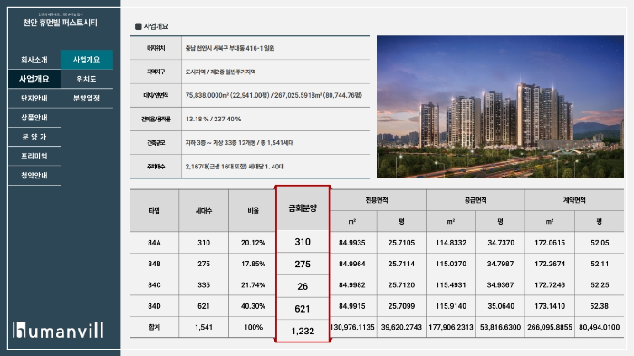 천안 부대지구 휴먼빌 퍼스트시티 분양가 부대동 미분양 잔여세대 선착순