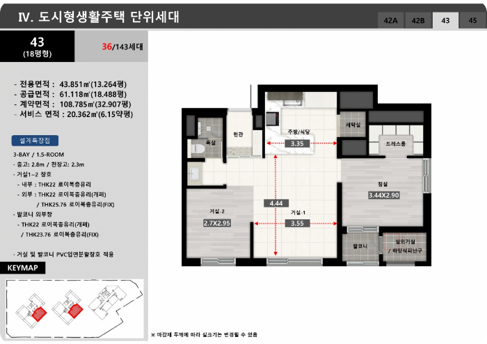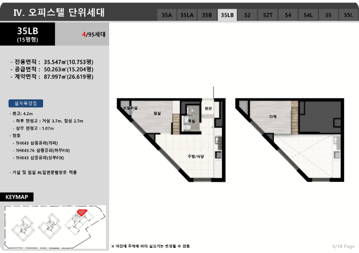평형은 18평형부터 42평형까지 폭넓게 마련되어 있습니다. 소형 평형은 1인 가구나 신혼부부에게, 중형 이상은 자녀가 있는 가족에게 적합하게 설계됐어요. 복층으로 구성된 타입은 공간을 수직으로 활용할 수 있고, 테라스를 갖춘 유닛은 도심에서도 외부 공간을 즐길 수 있게 해줍니다. 모든 세대에 세대창고가 기본으로 들어가 있어 수납 문제도 해결됐습니다.