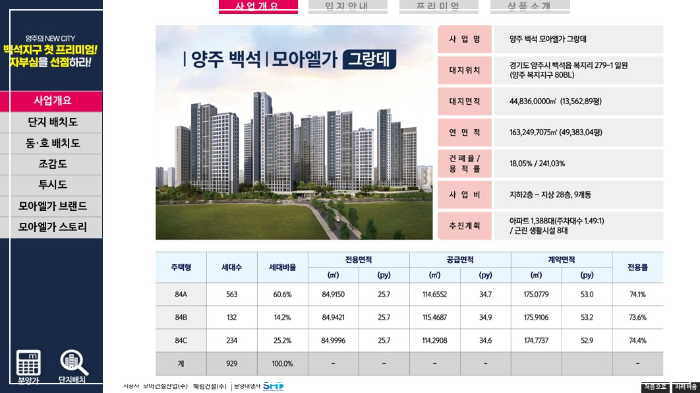 양주 백석읍 복지리 모아엘가 아파트 백석지구 미분양아파트 계약조건