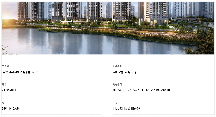 충남 천안시 서북구 성성동에 건립되는 천안 아이파크시티 5,6단지는 대규모 브랜드 커뮤니티의 중심축 역할을 담당합니다. 지하 2개 층부터 지상 35개 층 높이로 16개 동이 들어서며, 전용 84제곱미터에서 197제곱미터까지 다양한 면적대로 설계됩니다. 전체 1948가구로 5단지 882가구, 6단지 1066가구가 배분되며, 일반 분양 대상은 1849가구입니다.